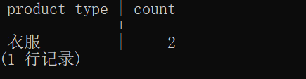 SELECT product_type, COUNT(*) FROM Product GROUP BY product_type HAVING product_type = '衣服';