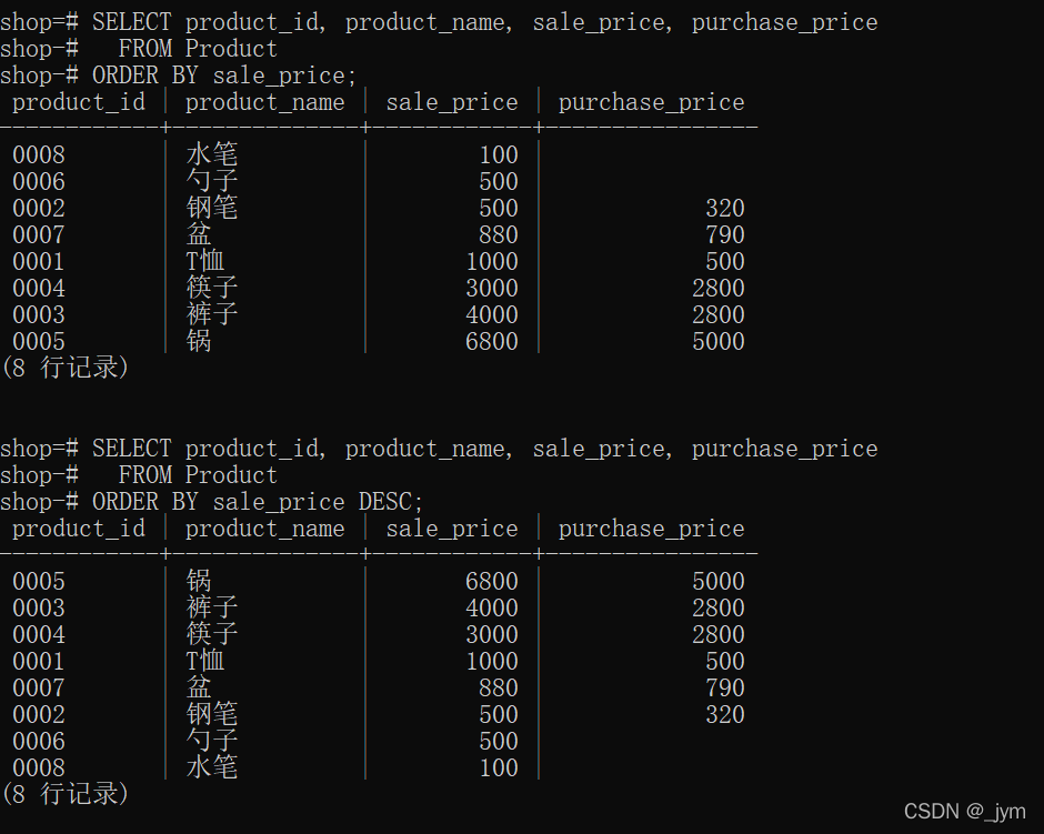 上面是升序排列,如果想要降序排列,使用DESC關(guān)鍵字。
