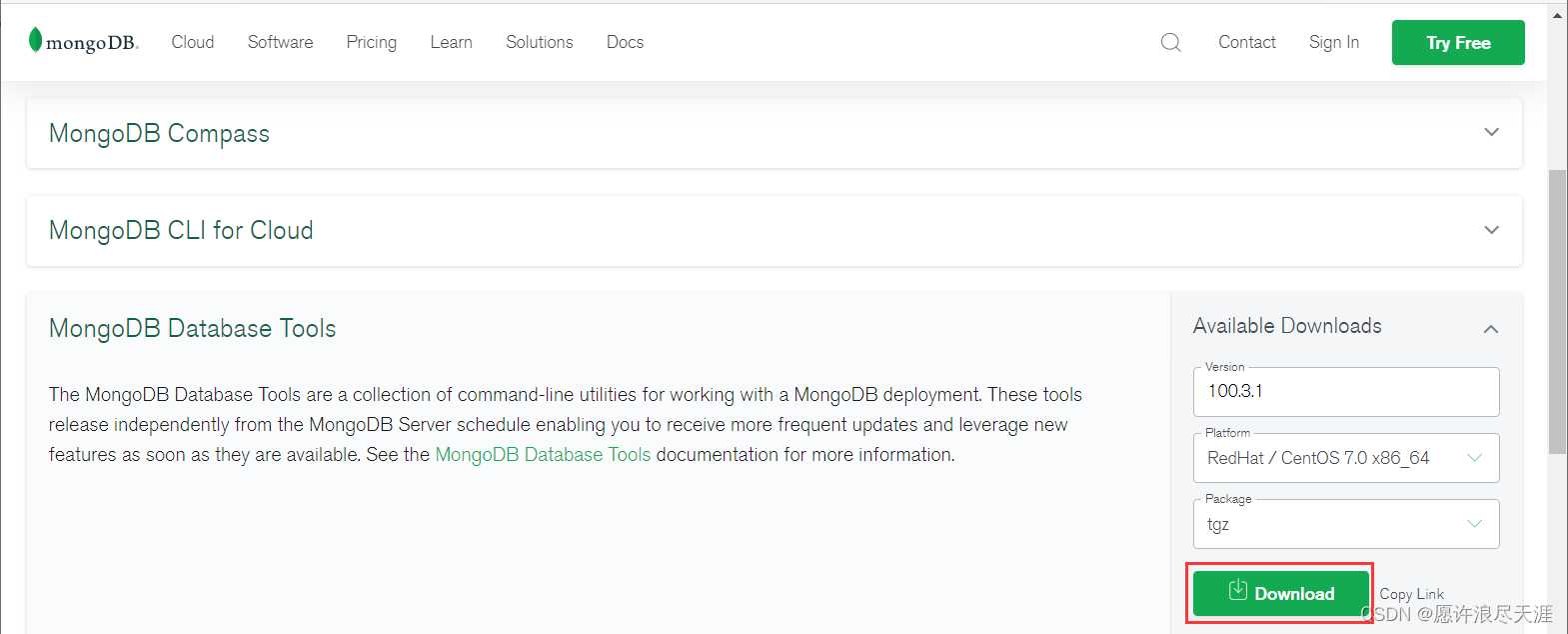 [root@MongoDB ~]# tar xf mongodb-database-tools-rhel70-x86_64-100.3.1.tgz