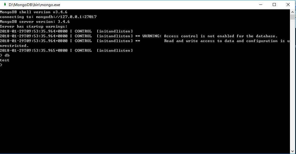 注意:MongoDB中默認(rèn)的數(shù)據(jù)庫是test,如果你沒有創(chuàng)建新的數(shù)據(jù)庫,集合將存放在test數(shù)據(jù)庫中。使用“db”命令可以查看當(dāng)前的數(shù)據(jù)庫。