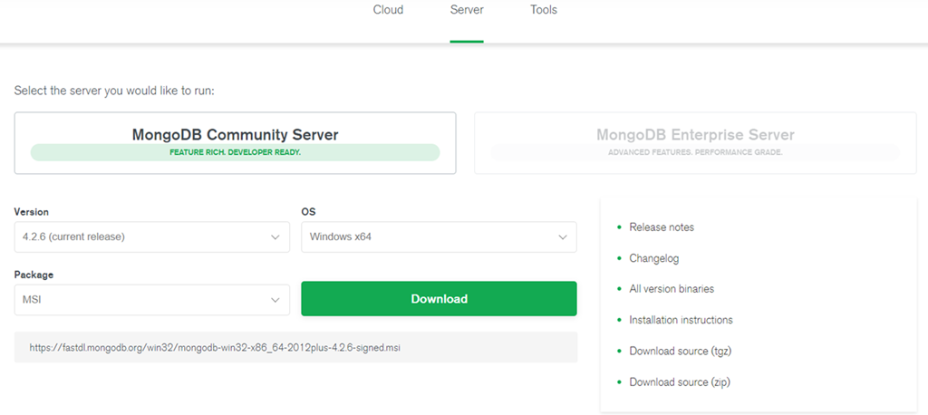 MongoDB 預(yù)編譯二進制包下載地址:https://www.mongodb.com/download-center/community