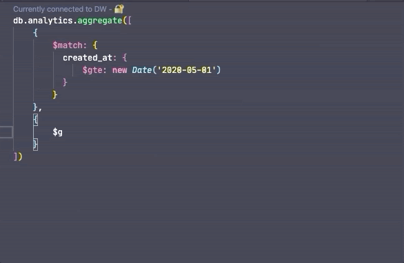 為了更容易,操練場包括針對MongoDB Shell API(例如,查找,聚合,toArray),MongoDB運算符以及數(shù)據(jù)庫,集合和字段名稱的語法突出顯示和智能自動完成功能。