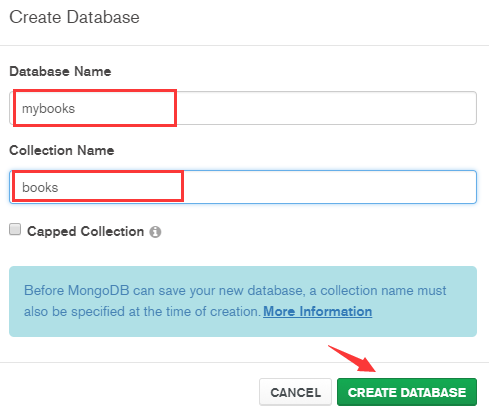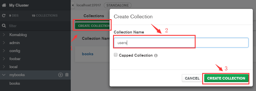 例如:創(chuàng)建數(shù)據(jù)庫mybooks,并且創(chuàng)建一個集合books,如下: