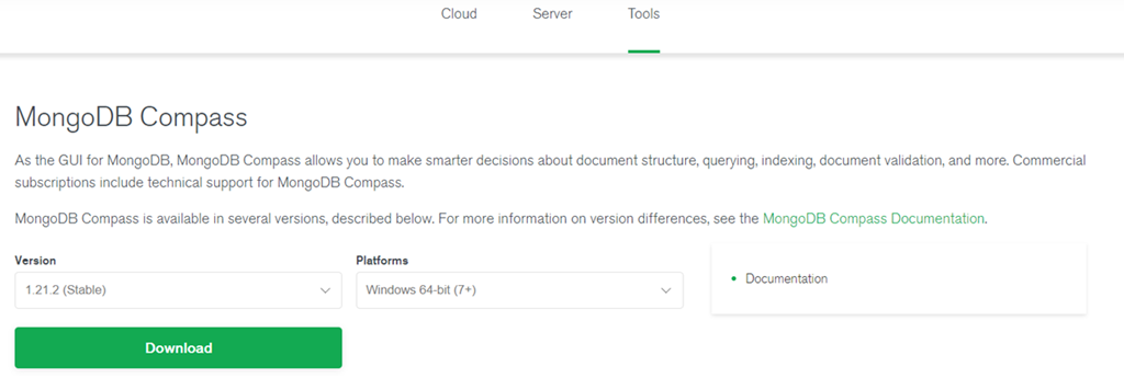 MongoDB Compass 是一個圖形界面管理工具,我們在安裝mongodb時候,會自動安裝compass。如果在安裝mongodb的過程中取消勾選安裝compass,那我們可以到官網(wǎng)下載安裝。