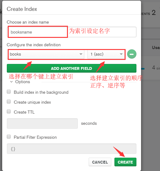 在Indexes中,可以觀測出相對應(yīng)的集合的索引情況,也可以創(chuàng)建索引,其中索引“_id_”是系統(tǒng)中規(guī)定的唯一索引,不可刪除。