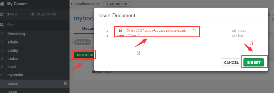 三、在數(shù)據(jù)庫mybooks中增加集合users