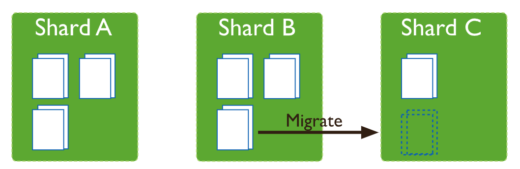 直至不同的分片服務(wù)器之間的數(shù)據(jù)塊的數(shù)量差異落在閾值之內(nèi),圖示如下: