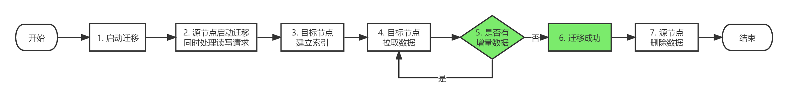 2. 源節(jié)點啟動了一個內(nèi)部的數(shù)據(jù)塊遷移命令給目標節(jié)點,同時在數(shù)據(jù)塊遷移期間,對于該數(shù)據(jù)塊的請求依然路由到源節(jié)點。