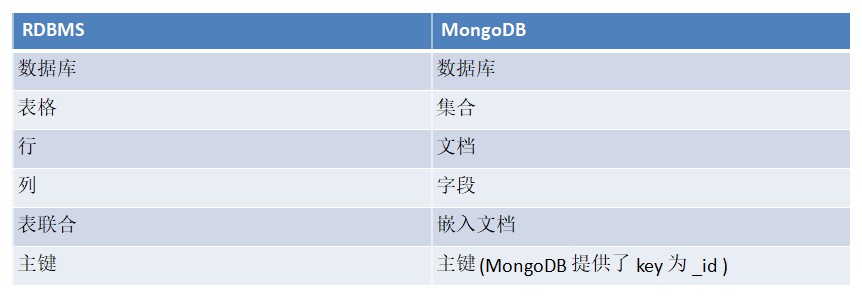 | primary key | primary key | 主鍵,MongoDB自動將_id字段設置為主鍵 |