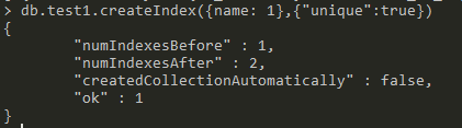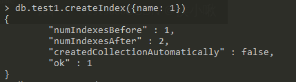 給name創(chuàng)建索引之前,_id字段默認為索引,創(chuàng)建后集合有兩個索引,"_id"和"name"。