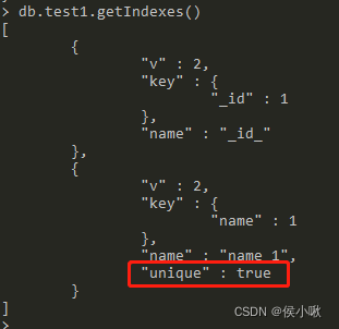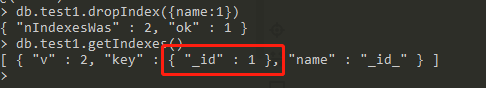 如圖,只剩下了"_id"一個索引。"name"索引已被刪除。