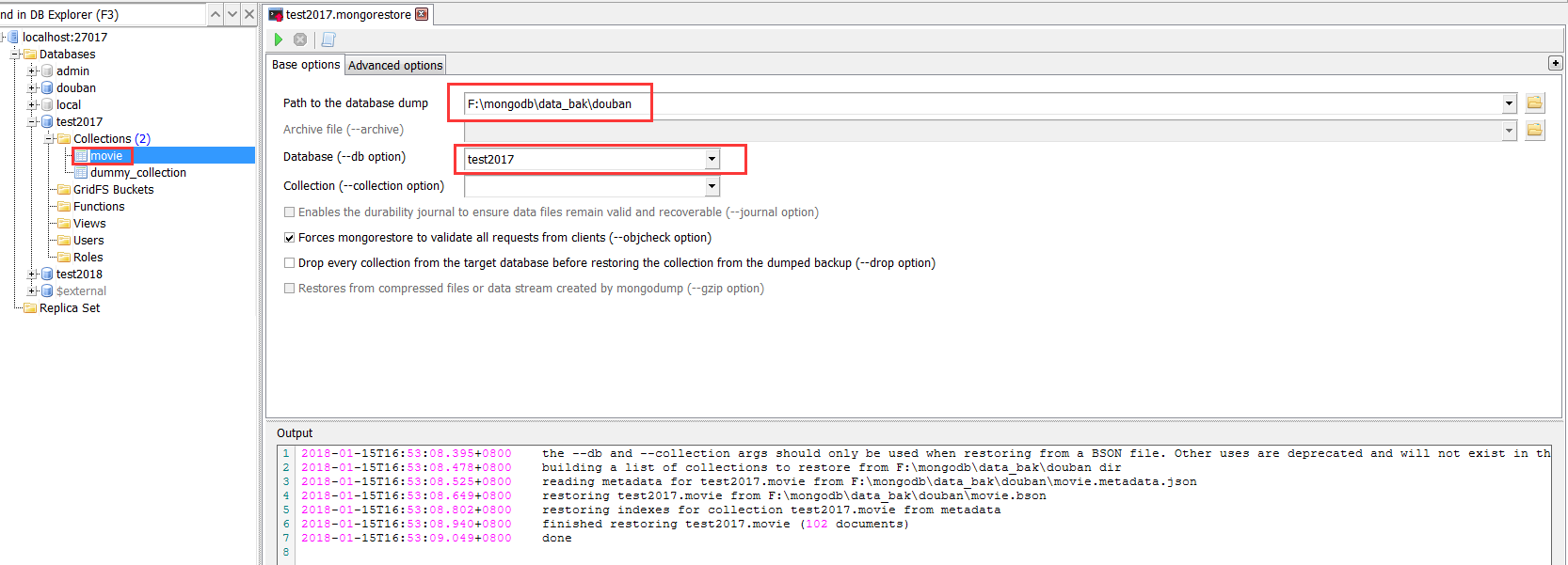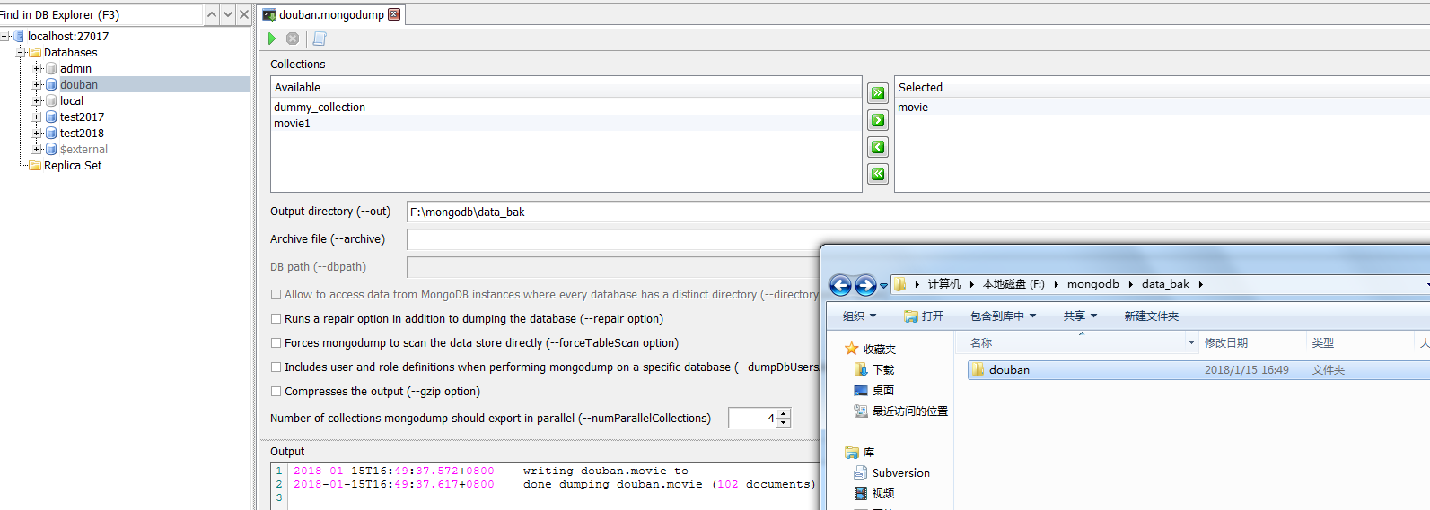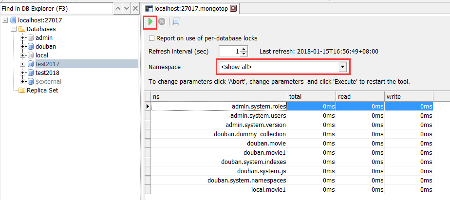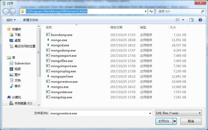 以下幾個功能 mongodump(備份)、mongorestore(還原)、mongotop(查看讀寫情況), 在執(zhí)行時,都需要指定程序所在path,比如我的是: C:\Program Files\MongoDB\Server\3.4\bin