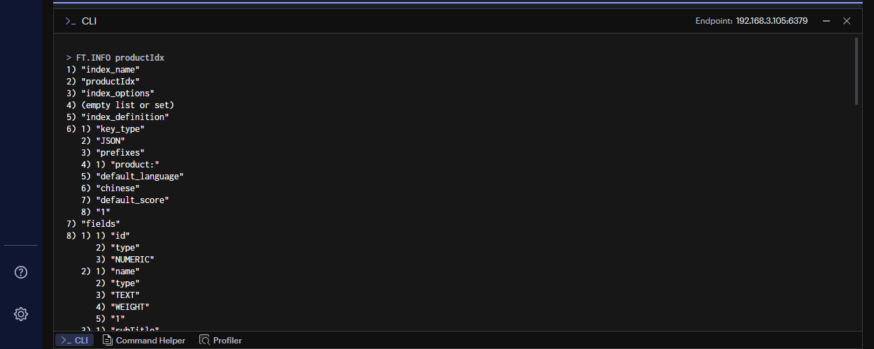 PREFIX 1 "product:"表示為鍵中以product:為前綴的數(shù)據(jù)建立索引; - LANGUAGE:指定TEXT類型屬性的默認(rèn)語言,使用chinese可以設(shè)置為中文;