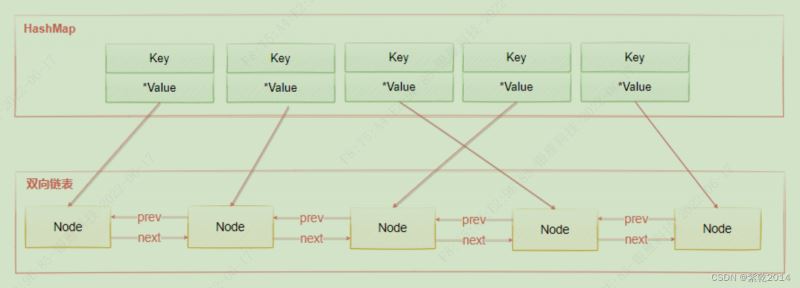 雙向鏈表的查找時(shí)間復(fù)雜度是O(n),刪除和插入是O(1),借助HashMap結(jié)構(gòu),可以使得查找的時(shí)間復(fù)雜度變成O(1)。