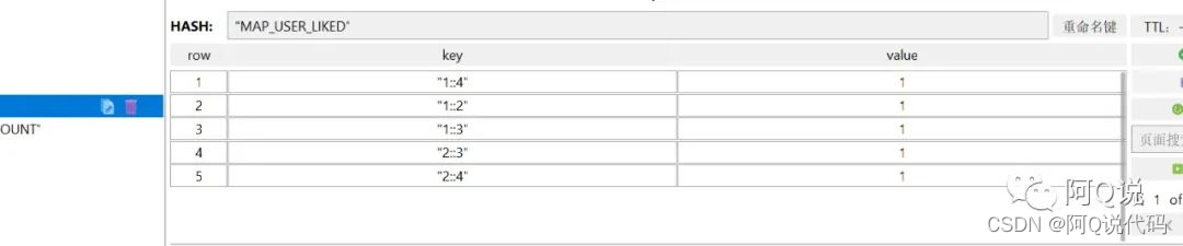(1)某用戶被其他用戶點(diǎn)贊的詳細(xì)記錄:MAP_USER_LIKED為鍵值,被點(diǎn)贊用戶id::點(diǎn)贊用戶id為 filed,1或者0為 value