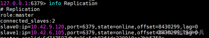 kubectl exec -it redis-0 -n redis-ns -- bash root@redis-0:/data# redis-cli 127.0.0.1:6379> AUTH devops 127.0.0.1:6379> info Replication #查看主從信息