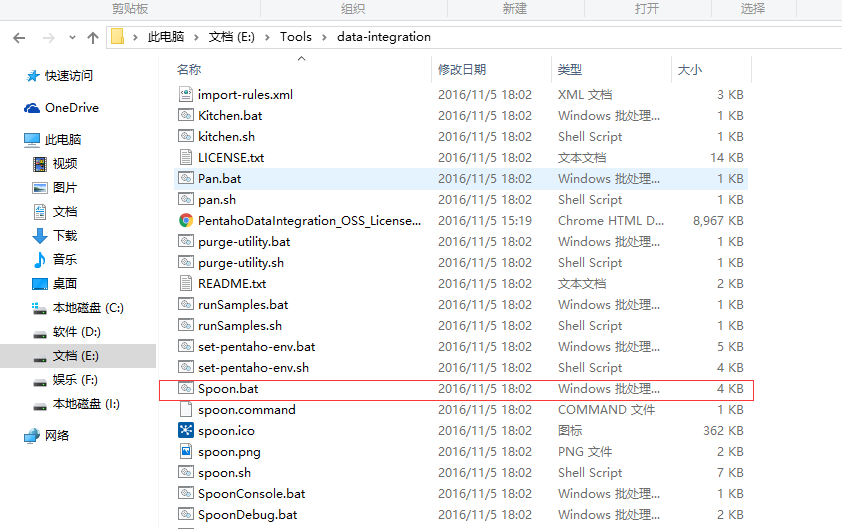 這個文件便是Windows下的批處理文件,用于打開pentaho工具。