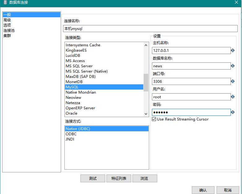 2,配置連接,以及Excel輸入,表輸出與之前同理