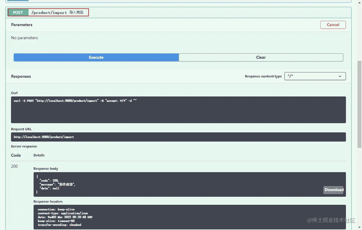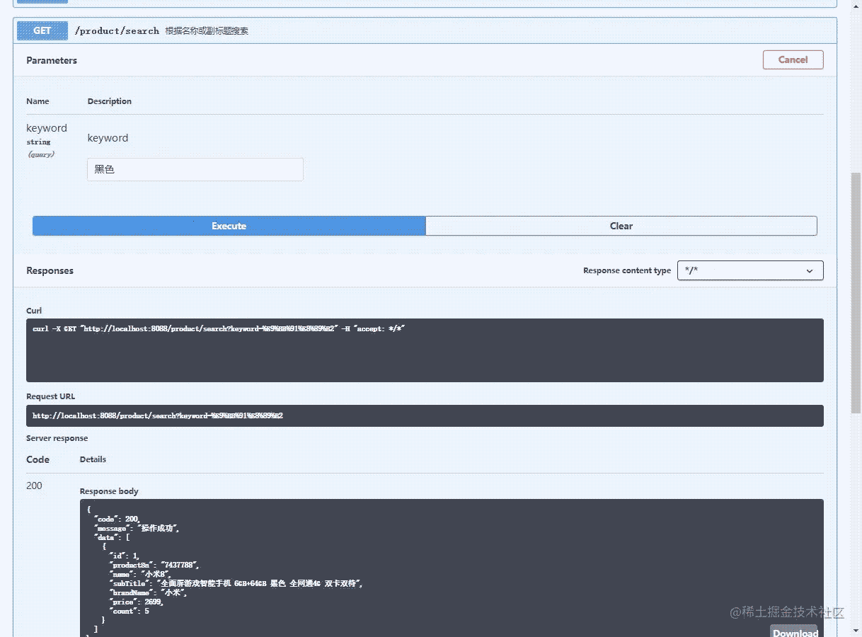 導(dǎo)入商品接口導(dǎo)入數(shù)據(jù),訪問地址:http://localhost:8088/swagger-ui/