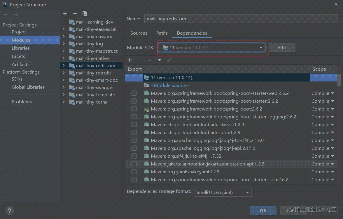 - 然后在IDEA的項(xiàng)目配置中,將對應(yīng)模塊的JDK依賴版本設(shè)置為