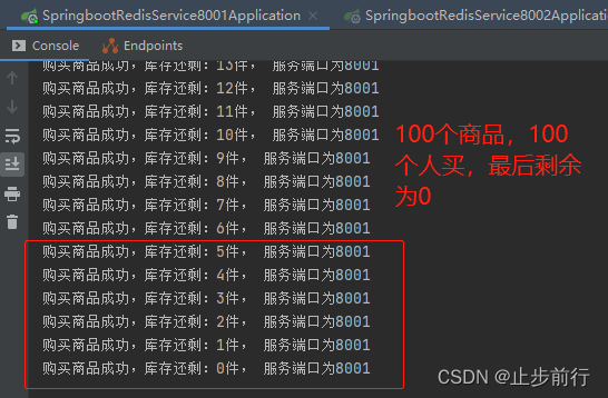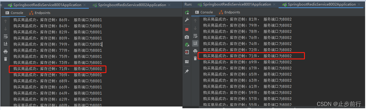 System.out.println("購買商品成功,庫存還剩:"+realTotal +"件, 服務端口為8001");