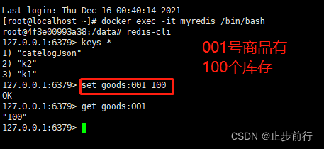 // Redis中存有g(shù)oods:001號商品,數(shù)量為100