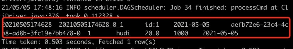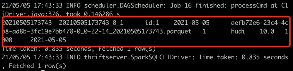 insert into test_hudi_table select 1 as id, 'hudi' as name, 10 as price, 1000 as ts, '2021-05-05' as dt