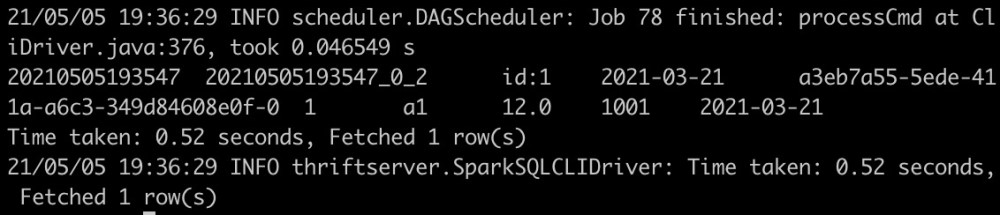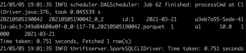 查詢結(jié)果如下,可以看到Hudi表中存在一條記錄