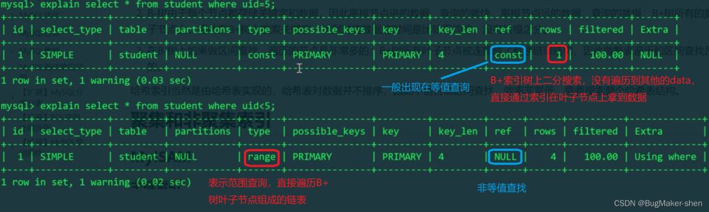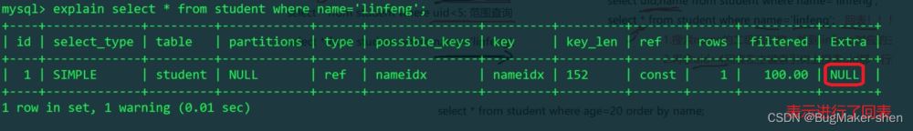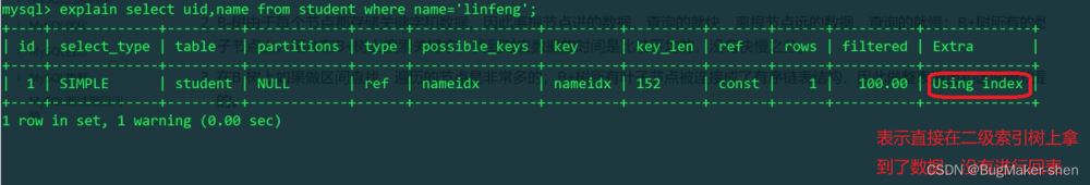 這種情況select的是name和uid,而這些在二級(jí)索引樹上也是直接就有,所以搜索二級(jí)索引樹就完事了。