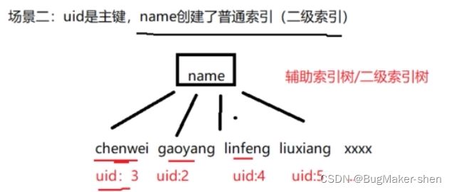uid是主鍵,以name創(chuàng)建了普通索引(二級(jí)索引)
