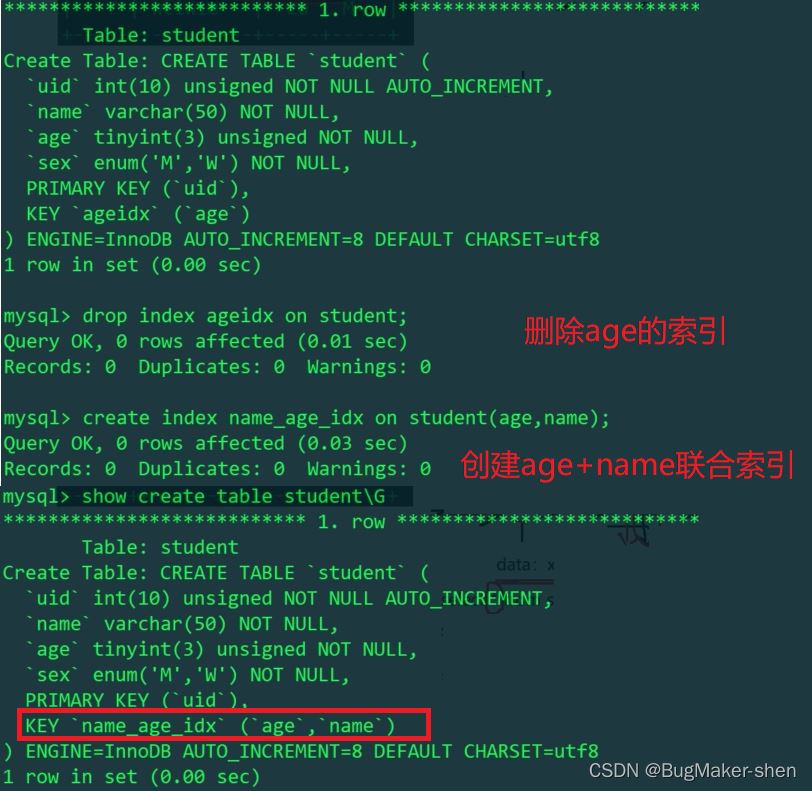 解決方法:我們可以在二級(jí)索引樹上的key:age+name,形成聯(lián)合索引,先按age排序,age相同了,再按name排序