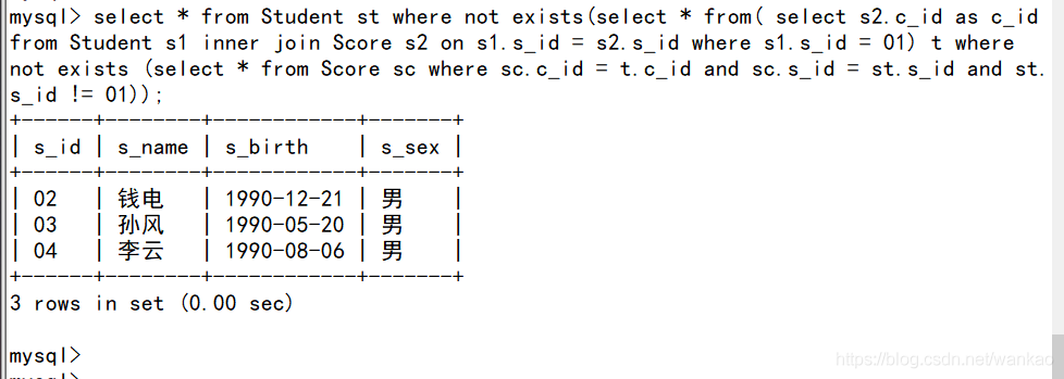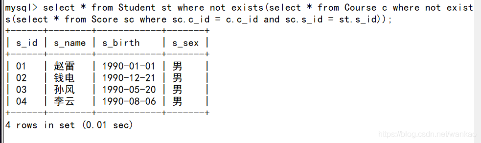 學(xué)了所有課程的同學(xué)的信息,那不就是這些同學(xué)沒(méi)有一門(mén)課程沒(méi)有學(xué)嗎。