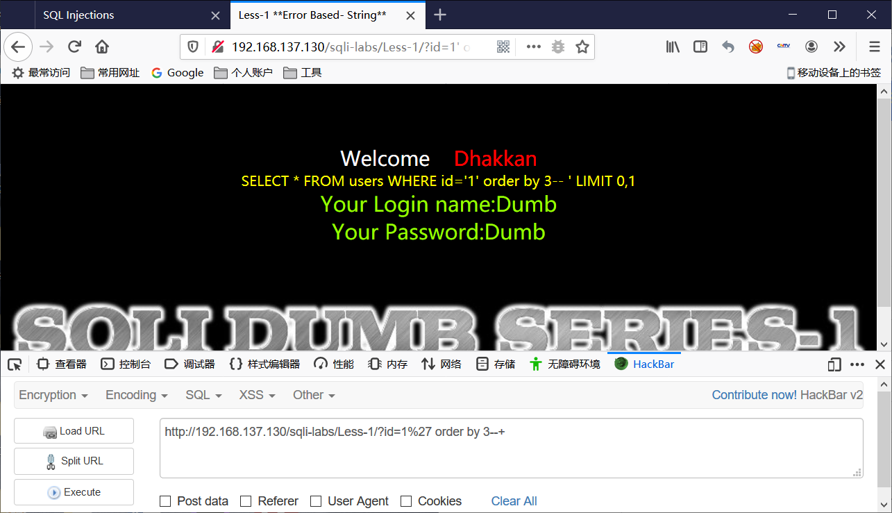 order by 大于3的數(shù)時頁面返回不正常,小于等于3時返回正常,得知原查詢語句的字段數(shù)為3。或