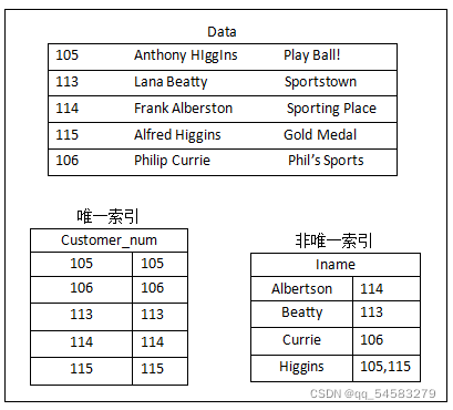唯一索引與非唯一索引的實(shí)例圖如下: