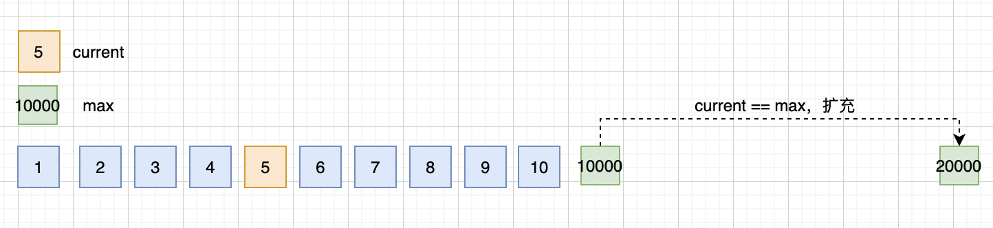 3、當(dāng)current==max的時(shí)候,重復(fù)第一個(gè)步驟,再次批量生成 10001~20000的值,并將數(shù)據(jù)庫中的max改成20000。