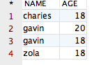 觀察以上的表,咱們會(huì)發(fā)現(xiàn):擁有相同 NAME 的記錄有兩條,擁有相同 AGE 的記錄有三條。如果咱們運(yùn)行下面這條 SQL 語(yǔ)句,