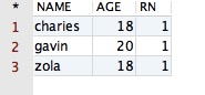 從上面的結(jié)果可以看出,其在原表的基礎(chǔ)上,多了一列標(biāo)有數(shù)字排序的列。那么反過(guò)來(lái)分析咱們運(yùn)行的 SQL 語(yǔ)句,發(fā)現(xiàn)其確實(shí)按字段 AGE 的值進(jìn)行分組了,也按字段 NAME 的值進(jìn)行排序啦!因此,函數(shù)的功能得到了驗(yàn)證。