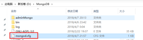 在安裝目錄中創(chuàng)建一個文件mongod.cfg