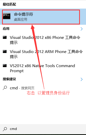 1、右擊開始按鍵選擇搜索輸入cmd,會(huì)出現(xiàn)一個(gè)命令提示符右鍵選擇以管理員身份運(yùn)行這個(gè)選項(xiàng),不然就會(huì)出現(xiàn)一個(gè)身份不夠的錯(cuò)誤碼