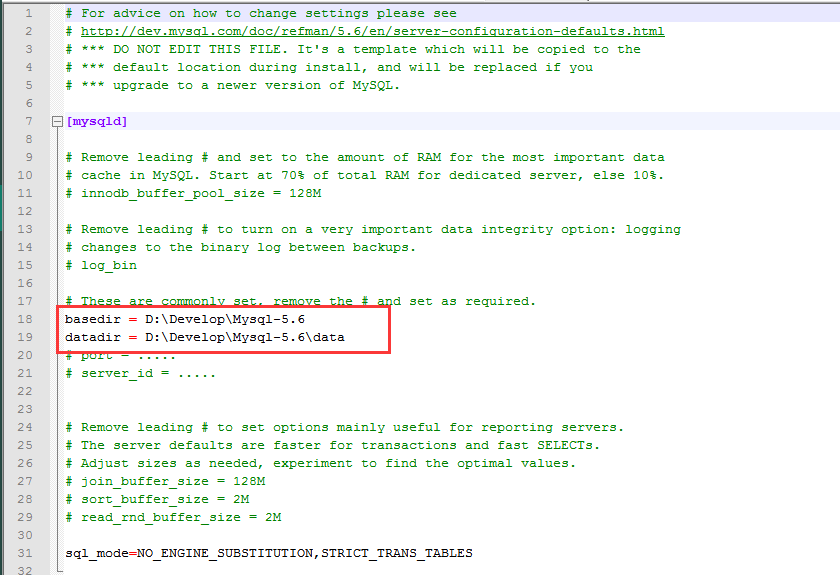 在根目錄下面有已經(jīng)寫好的"my-"開頭的ini文件,如:my-default.ini。復制一份,將文件名修改為my.ini,添加以下內(nèi)容: