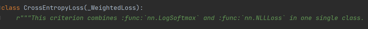 首先初始化LeNet網(wǎng)絡(luò),定義交叉熵?fù)p失函數(shù),以及Adam優(yōu)化器,關(guān)于注釋寫的,我們可以ctrl+鼠標(biāo)左鍵查看CrossEntropyLoss(),翻到CrossEntropyLoss類,可以看到注釋寫的這個標(biāo)準(zhǔn)包含LogSoftmax函數(shù),所以搭建LetNet模型的最后一層沒有使用softmax激活函數(shù)