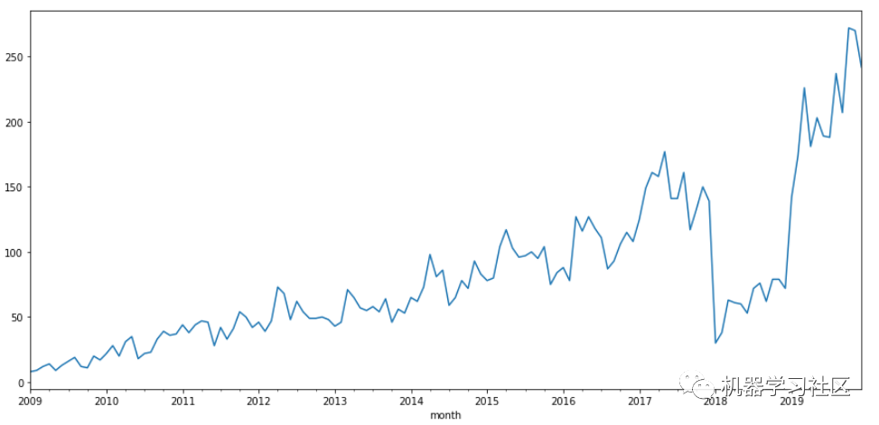 首先構(gòu)造一個(gè)時(shí)間序列對(duì)象。我們使用time_col_name='month'指定時(shí)間列。