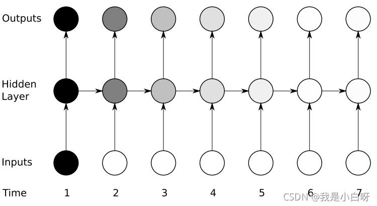 我們可以看出, 隨著時(shí)間的增加, 深層的網(wǎng)絡(luò)對(duì)淺層的感知變得越來越微弱, 梯度接近于0.