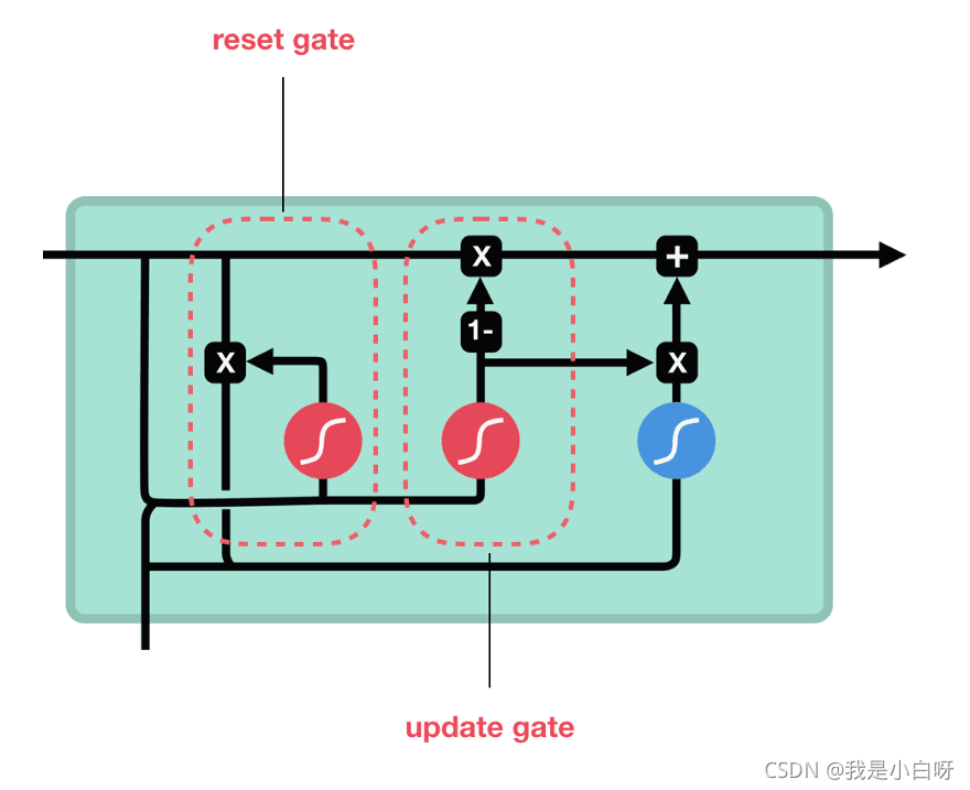 GRU (Gate Recurrent Unit) 和 LSTM 類似, 但是更易于計(jì)算. GRU 由重置門, 更新門, 和輸出門組成. 重置門和 LSTM 的遺忘文作用一樣, 用于決定信息的去留. 同理, 更新門的作用類似于 LSTM 的輸入門.