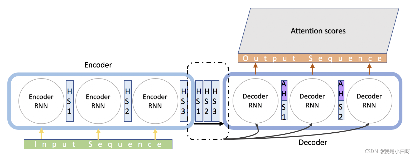 首先根據(jù) Encoder 和 Decoder 的特征計(jì)算權(quán)值, 然后對(duì) Encoder 的特征進(jìn)行加權(quán)求和, 作為 Decoder 的輸入. 其作用的將 Encoder 的特征以更好的方式呈獻(xiàn)給 Decoder. (并不是所有的 context 都對(duì)下一個(gè)狀態(tài)的生成產(chǎn)生影響, Attention 就是選擇恰當(dāng)?shù)?context 用它生成下一個(gè)狀態(tài).