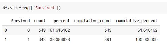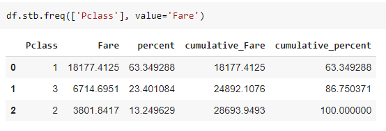 對于 sidetable,使用 freq() 函數(shù)在一行Python代碼中實現(xiàn)它更簡單。你可以獲得累計總數(shù)、百分比和更大的靈活性。