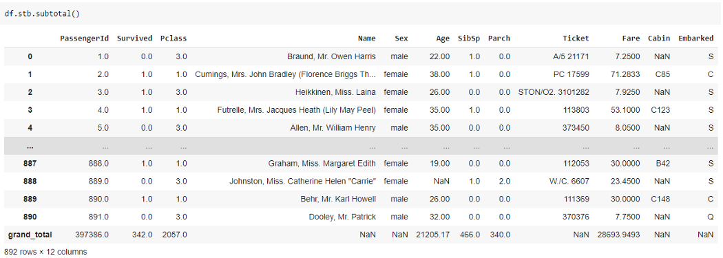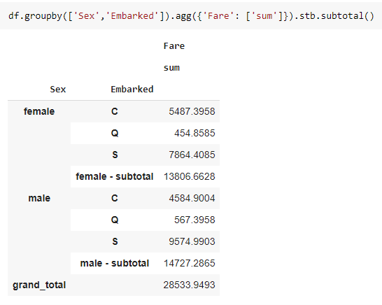 Sidetable 中 subtotal() 函數(shù)最適合與 Pandas 中的 group by 函數(shù)一起使用。它可用于計算數(shù)據幀分組的一個或多個級別的小計。