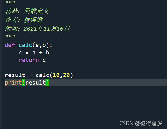 3.這個(gè)函數(shù)我定義為calc,用了做加法運(yùn)算,后面輸入兩個(gè)數(shù)引用在這個(gè)函數(shù)里就可以算加法運(yùn)算了,你們還可以自我發(fā)揮。