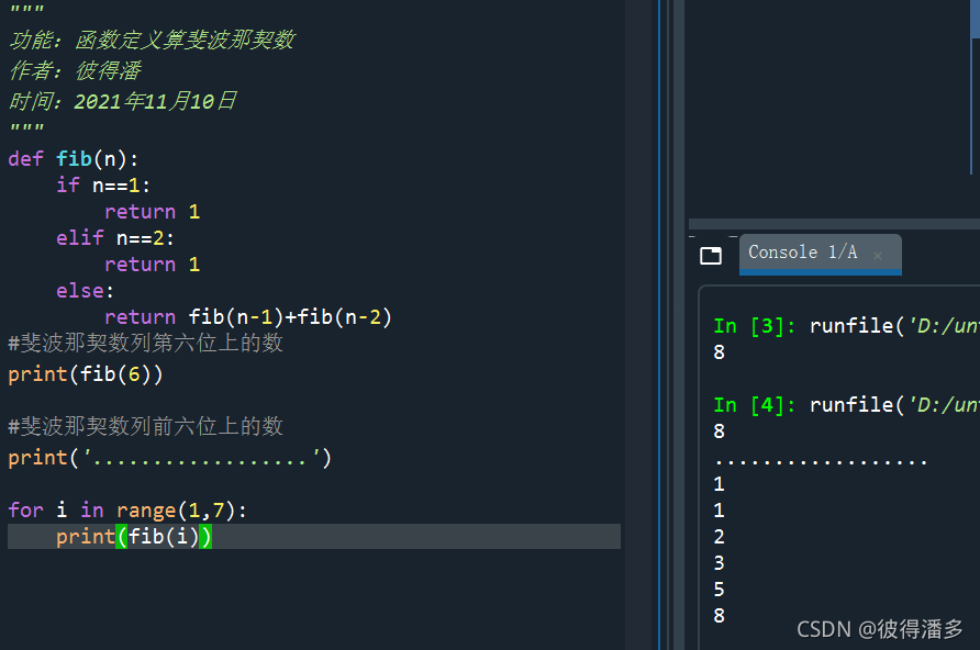 4.還可以算前幾位的數(shù),在這里面我定義了函數(shù)為fib,然后通過后面的代碼,就可以來體現(xiàn)。